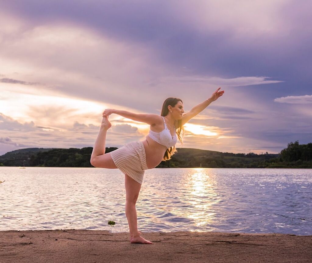 À espera da segunda filha, Jaqueline posa sob um pôr do sol que acolhe e anuncia. Cada gesto carrega memória. Cada imagem é um capítulo único. E, agora, a vida que chega amplia ainda mais o sentido do movimento, do cuidado e do amor.
