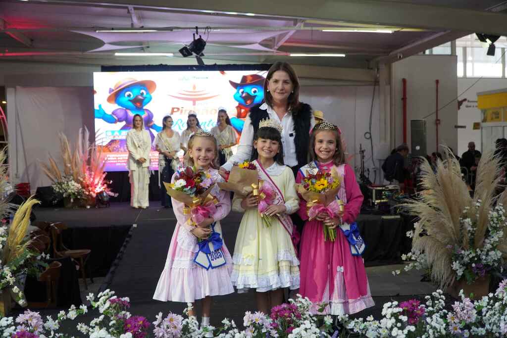 O momento mais esperado do dia foi o anúncio das vencedoras, em clima de muita emoção e comemoração. Apresentadas pela jornalista Bia Melo, do Programa Oh de Casa, as eleitas como representantes oficiais da Realeza Mirim da 35ª Festa Nacional do Pinhão foram: