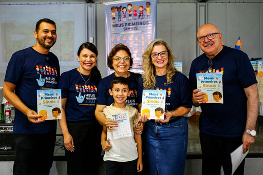 A Escola Municipal de Educação Básica (Emeb) Aline Giovana Schmitt, no bairro Guarujá, recebeu, na manhã desta quarta-feira (11 de março), o lançamento da obra “Meus Primeiros Sinais: Libras para Crianças - Números”.
