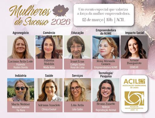 A Associação Empresarial de Lages será palco de mais uma edição do Prêmio Mulheres de Sucesso, uma iniciativa do Núcleo da Mulher Empreendedora que acontece na próxima quinta-feira, 12 de março.