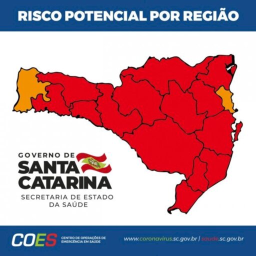 O Governo de Santa Catarina divulgou nesta quarta-feira, 9, a nova matriz de risco potencial para Covid-19. Dentre as 16 regiões de saúde do Estado, 14 estão em nível gravíssimo. Em relação ao boletim da semana passada, a região Foz do Rio Itajaí foi reclassificada, passando de gravíssimo (vermelho) para grave (laranja). A região do Extremo Oeste permanece em nível grave.