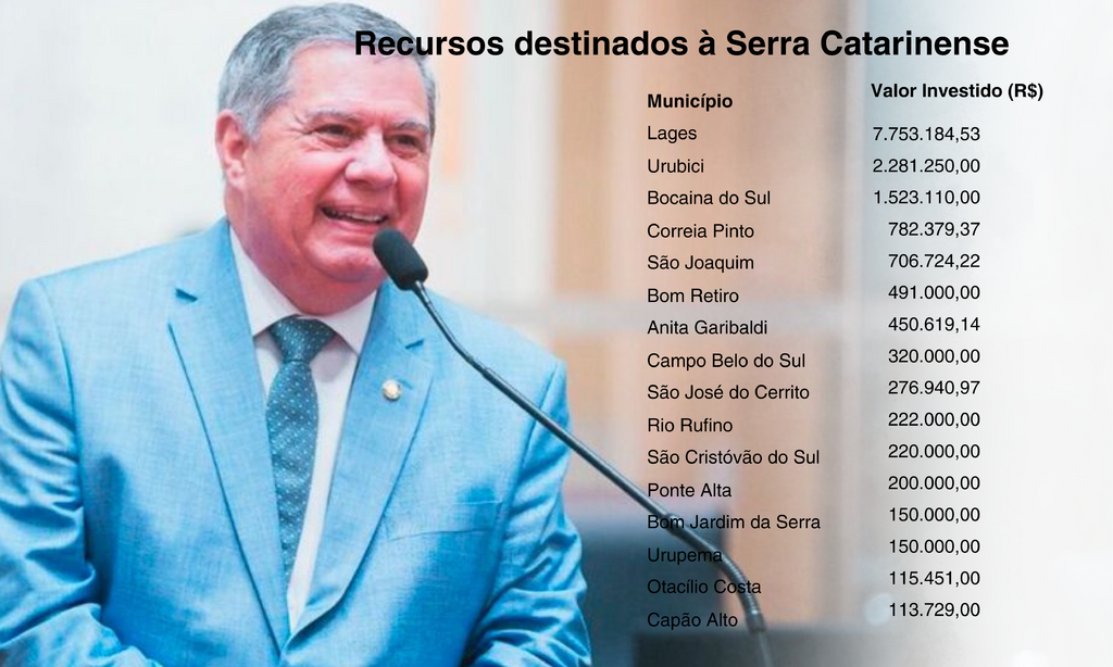 Ainda assim, para fins de transparência e para facilitar a compreensão do impacto dos recursos públicos na região, os números atuais permitem uma comparação ilustrativa: com 4.604 votos obtidos na Serra Catarinense, o investimento total representa R$ 3.416,46 em emendas para cada voto recebido, evidenciando o retorno social gerado à população.