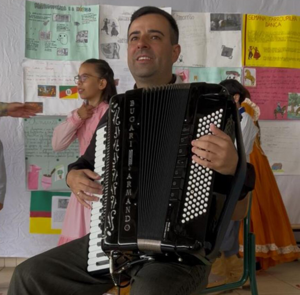 O acordeonista Douglas Moraes também participou das comemorações Farroupilha na Escola Flodoardo Cabral