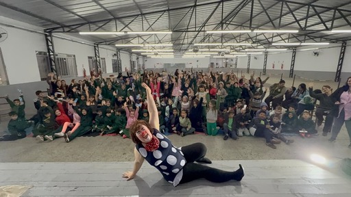 Nele, de forma lúdica e interativa, a palhaça aborda a relação com seu corpo fora dos padrões, o sonho de conhecer a praia, que é algo distante para quem, assim como ela, vive no Oeste catarinense e a resiliência de transformar obstáculos em poesia e humor.