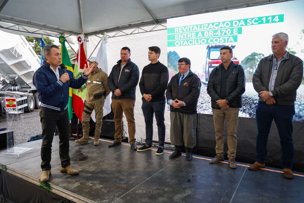 O Governo de Santa Catarina entregou nesta sexta-feira, 3, em Otacílio Costa, a revitalização de um trecho fundamental da SC-114 para o escoamento da produção, entre a comunidade de Otávio Costa e o entroncamento com a BR-470. A obra, realizada pelo programa Estrada Boa, contemplou quase 18 quilômetros de pavimento totalmente renovados, com investimento de R$ 17 milhões.